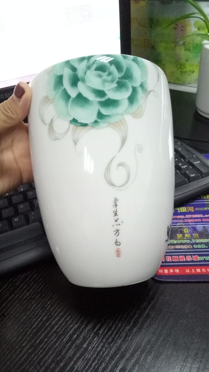 客户定制 景德镇手绘陶瓷绿叶文字加湿器