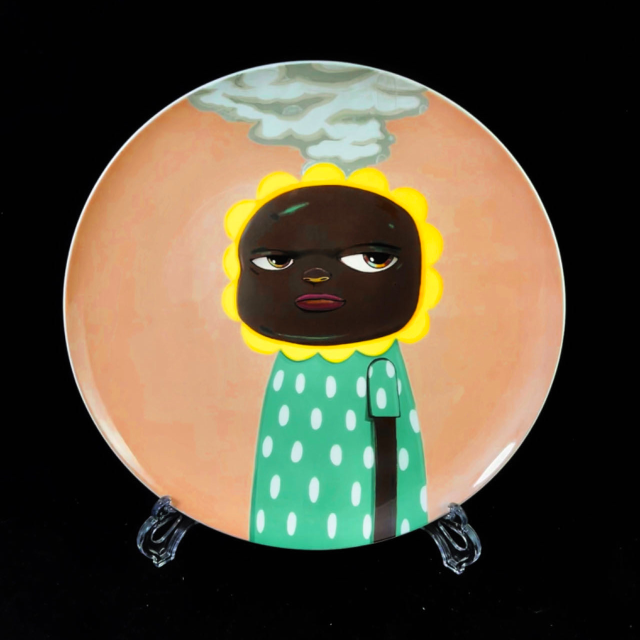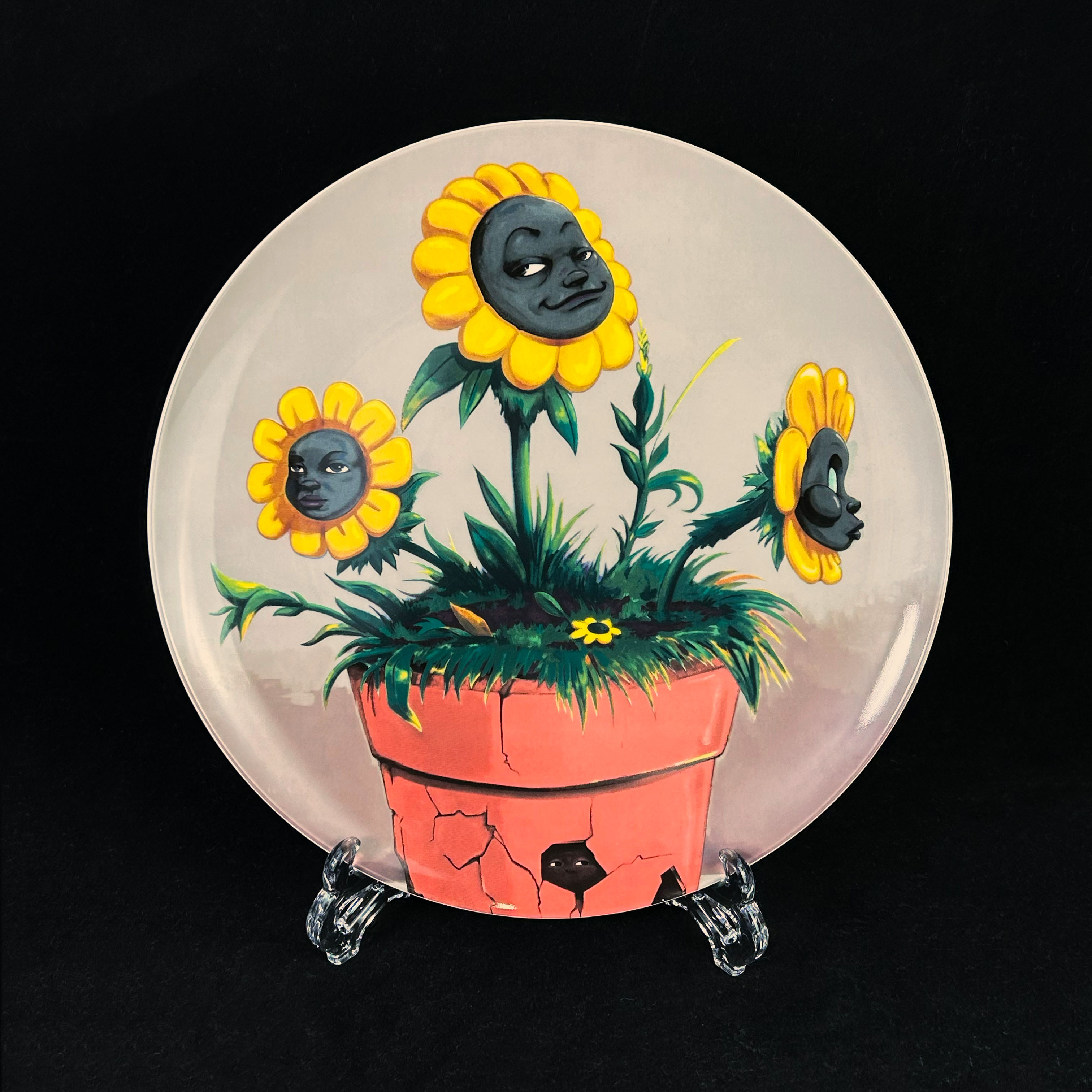 客户定制 手绘抽象向日葵陶瓷纪念盘