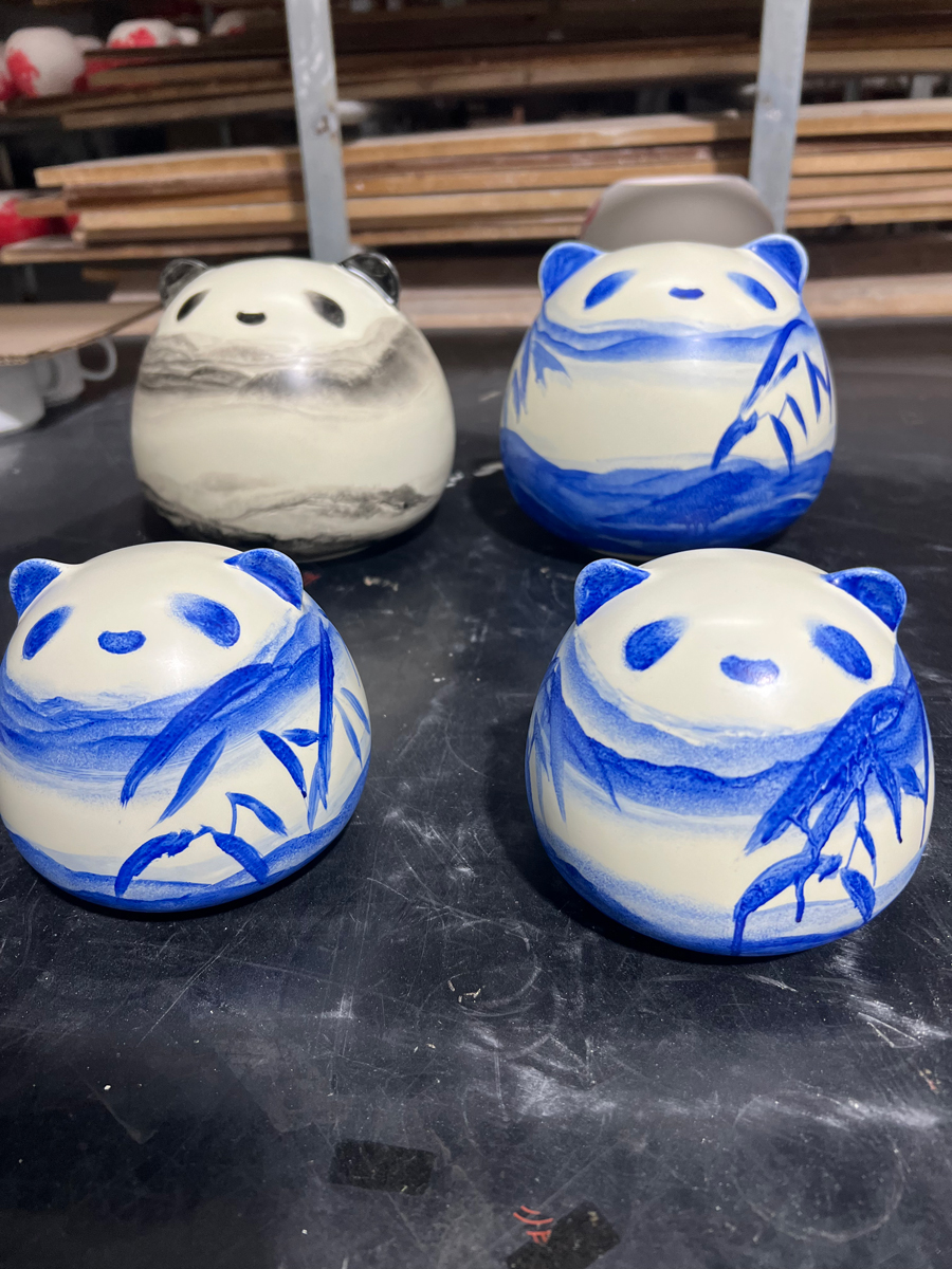 客户找到水蜜桃亚洲一二三四在线,想要定制一批熊猫造型的茶叶罐,将产品制作出来后,客户很满意!下面是产品的大货图: